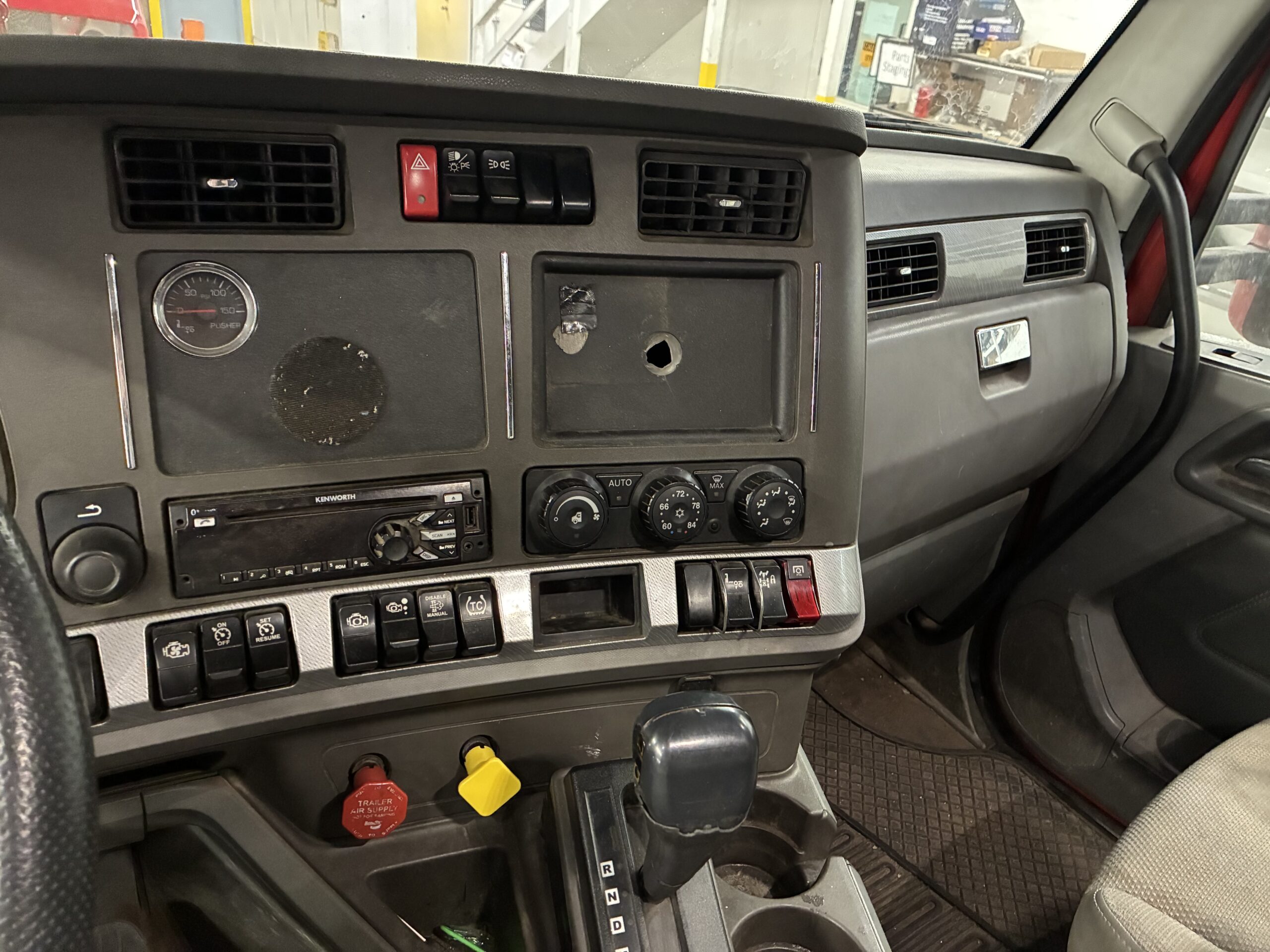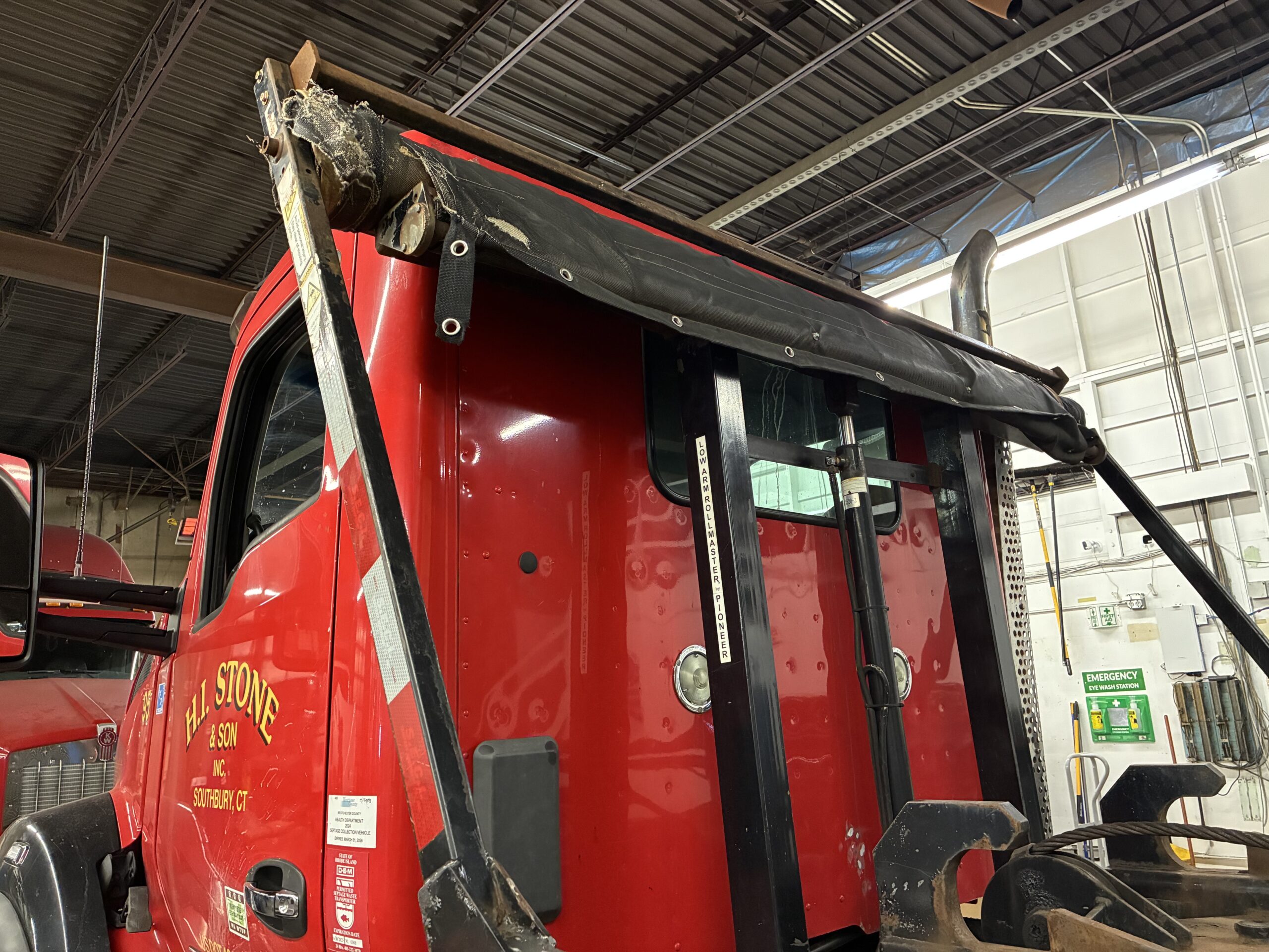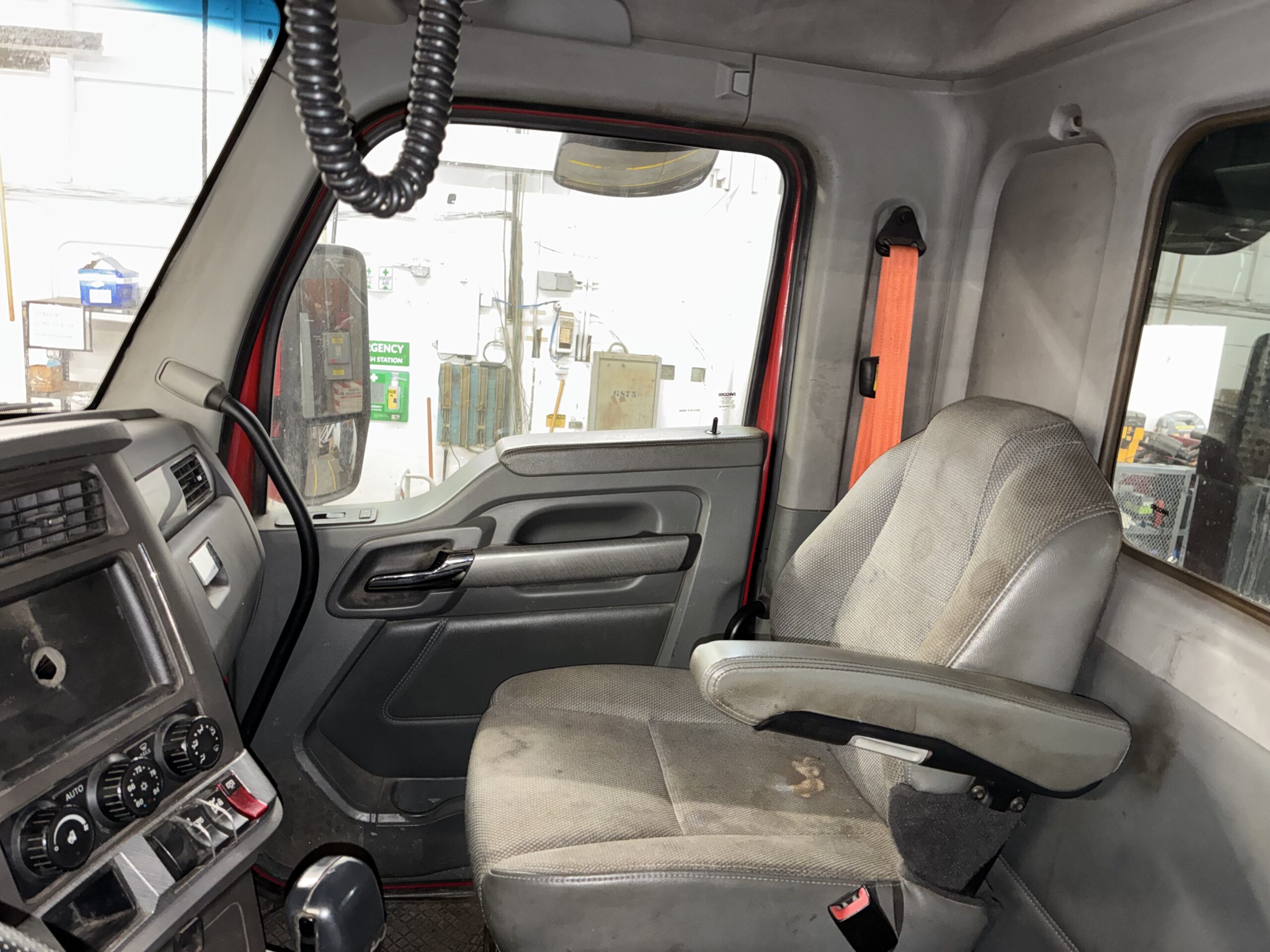 This truck runs on a 455 HP PACCAR MX-13 engine with engine brake. It pairs with an Eaton automatic transmission and a 4.30 rear ratio. As a result, the truck provides strong pulling power for demanding roll-off and waste applications.