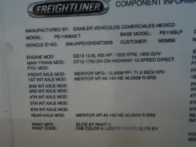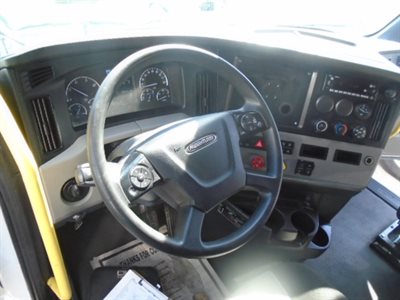 Power comes from a 450 HP Detroit DD13 12.8L diesel engine paired with a Detroit 12-speed automated transmission. This setup provides excellent fuel efficiency while still delivering the torque required for heavy freight.